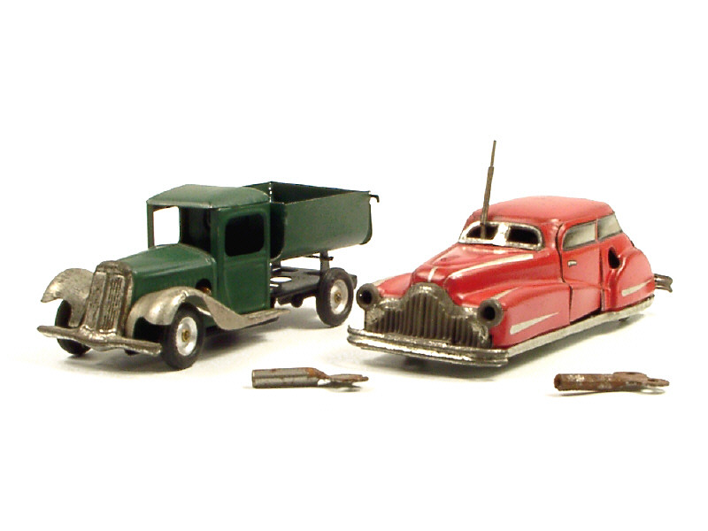 longueur 13 cm - moteur à clef (fonctionne) - parties nickelées ternies - une petite trace d'oxydation sur un marchepieds - avec clef