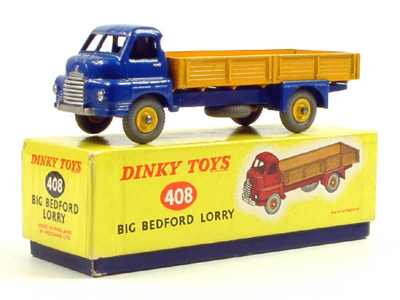 DINKY TOYS (GB) 408 BIG BEDFORD Plateau à ridelles bleu & jaune, jantes jaunes