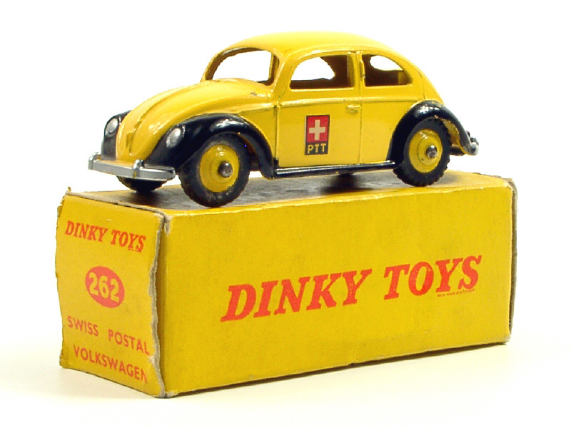 DINKY TOYS (GB) 262 VOLKSWAGEN Coccinelle 'PTT SUISSE' jaune & noir, jantes jaunes
