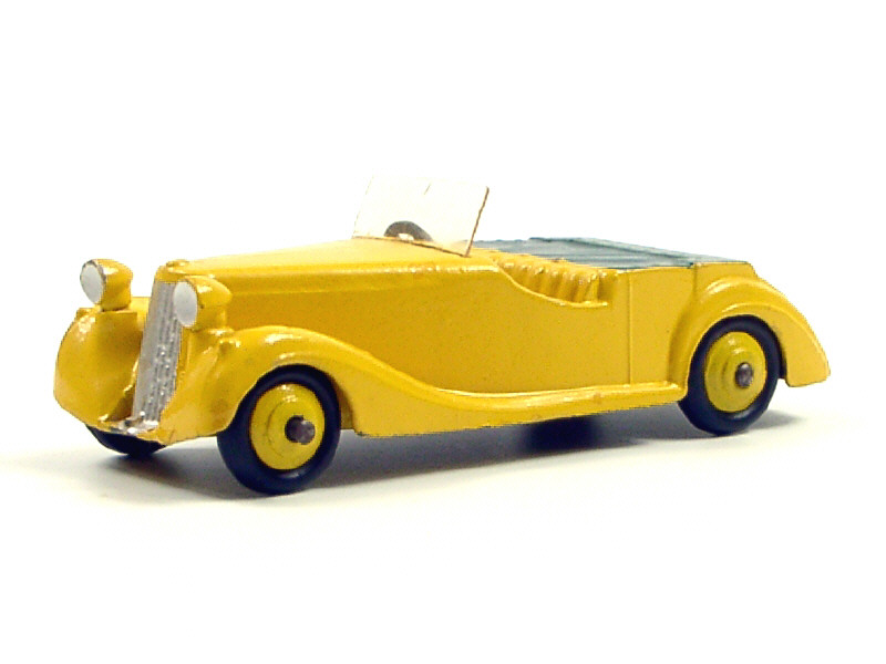 DINKY TOYS (GB) 38B SUNBEAM TALBOT Sports jaune, capote vert foncé & jantes jaunes