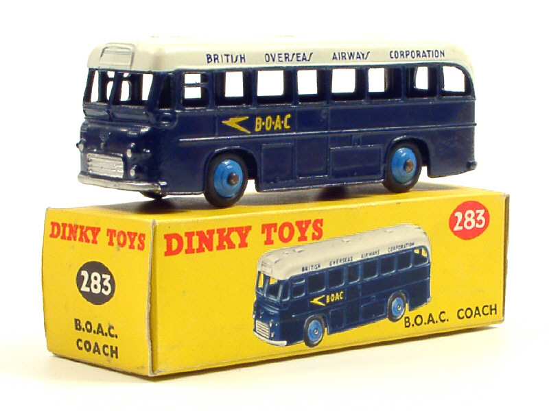 DINKY TOYS (GB) 283 Bus 'B.O.A.C' bleu foncé, toit blanc & jantes bleu vif