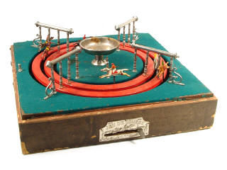 dimensions : 46 x 46 cm - mécanisme (fonctionne) - manque 2 petits accessoires - feutre mité - traces d'oxydation sur la coupelle centrale