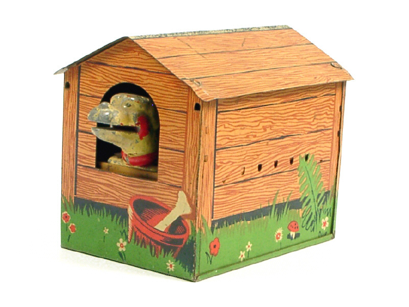 DIVERS Tirelire en forme de niche en tôle lithographiée marron & vert