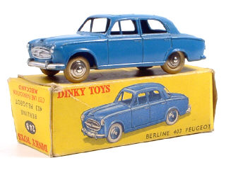 DINKY TOYS (FRANCE) 24B PEUGEOT 403 (version sans vitre & avec jantes convexes) bleu nattier
