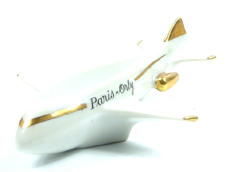 DIVERS 4373 Cendrier en céramique en forme d'avion de ligne 'PARIS ORLY' blanc & or