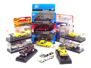miniatures reproduisant les modèles : FORD, MIRAGE FORD, BUGATTI, FERRARI, ALPINE, LOLA, AC, MASERATI, CITROËN, PORSCHE, CHEVROLET & RENAULT - un modèle sans boîte