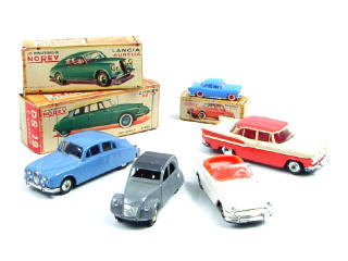 comprend : une JAGUAR 2,4 l, une SIMCA CHAMBORD (manque une antenne), une SIMCA OCEANE (manque antenne) & une SIMCA VERSAILLES (série micro-miniature) - boites en état 'd' - on y joint une CITROËN 2CV DINKY TOYS en état 'D'