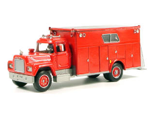 HOBBY TOWN (USA) MACK Fourgon de pompiers de NEW-YORK rouge, toit argent