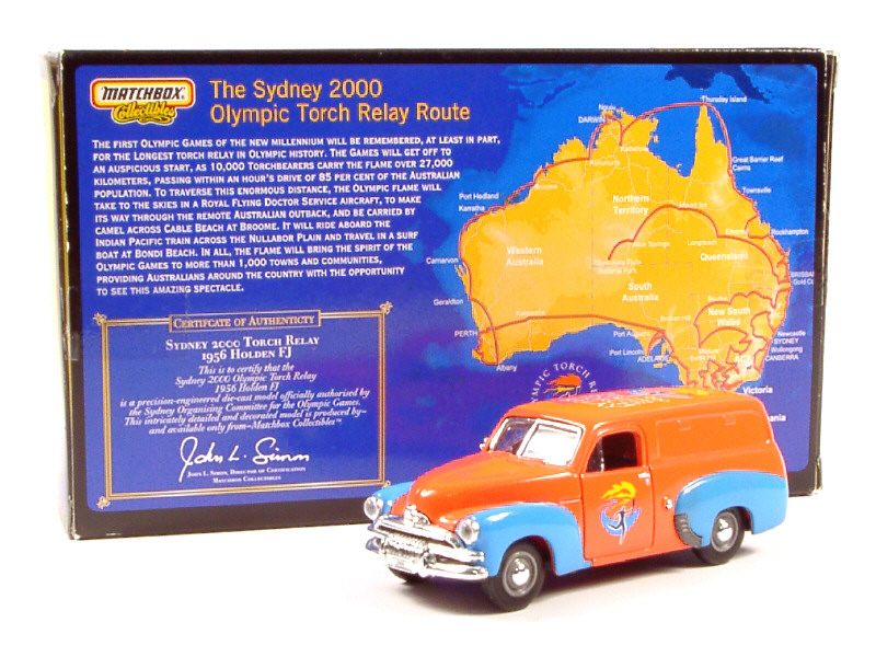 MATCHBOX - MODELS OF YESTERYEAR (GB) YY38336 HOLDEN FJ Van 'OLYMPIC TORCH RELAY SYDNEY 2000' de 1955 saumon foncé & bleu