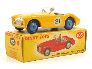 DINKY TOYS (GB) 109 AUSTIN HEALEY 100 Sport jaune d'or, intérieur & jantes bleus