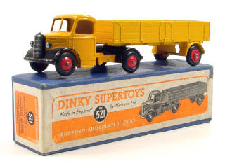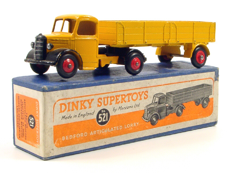 DINKY TOYS (GB) 521 BEDFORD Semi-remorque plateau à ridelles jaune d'or, ailes noires & jantes rouges