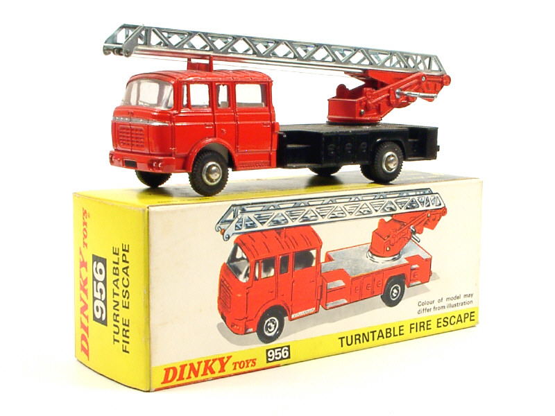 DINKY TOYS (GB) 956 BERLIET GLK Grande échelle de pompiers rouge, plate-forme noire