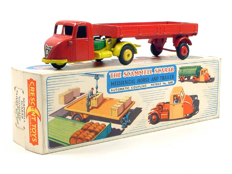 CRESCENT TOY (GB) 1272 SCAMMELL SCARAB avec remorque-plateau rouge, jaune & vert