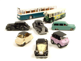 états de 'A' à 'R' - miniatures reproduisant les modèles : SAVIEM, RENAULT, ALFA ROMEO, PEUGEOT, ISETTA, FERVES & WOLSELEY - on y retrouve les marques : NOREV, CIJ, POLITOYS, QUIRALU, CHAD VALLEY, MERCURY, SOLIDO & MORESTONE - 2 modèles transformés - petits manques
