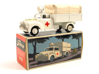 version avec projecteur directionnel sur le toit de la cabine, décalques représentant la Croix-Rouge sur les portières, calandre chromée & marquages latéraux 'TEKNO - 952' sur le capot-moteur