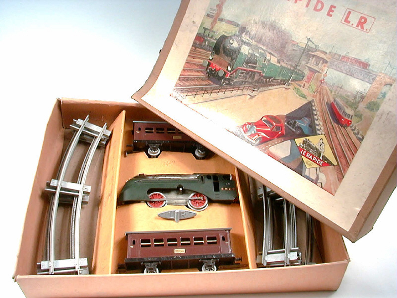 L.R. (FRANCE) Coffret de train voyageurs mécanique vert, bordeaux & gris
