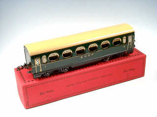 HORNBY 'O' (FRANCE) Voiture-voyageurs première & 2ème classes (voiture n°4) vert & crème