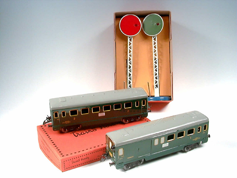 HORNBY 'O' (FRANCE) Voiture mixte voyageurs première classe & bagages vert & gris