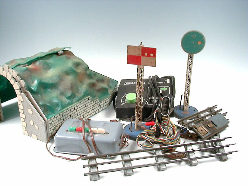 on y retrouve des transformateurs (JEP, FALLER), des signaux HORNBY, un tunnel HORNBY & une cellule de redressement JEP