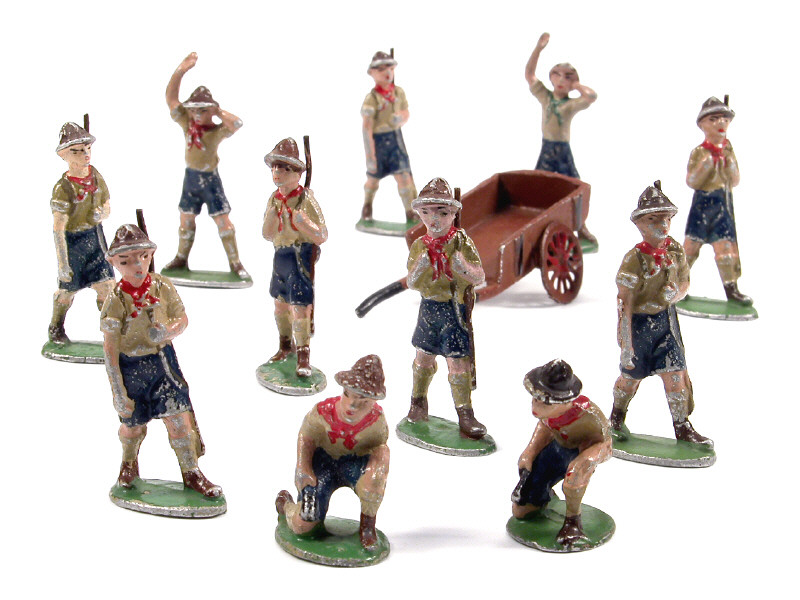 comprend : 2 chefs scouts bras levés, 2 scouts à genoux, 4 scouts premier type & 3 scouts 2ème type