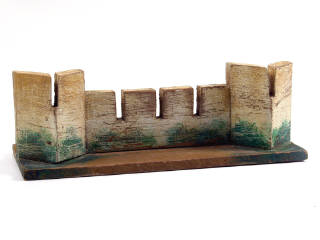 BOISLUX (FRANCE) Mur crénelé de défense beige, marron & vert