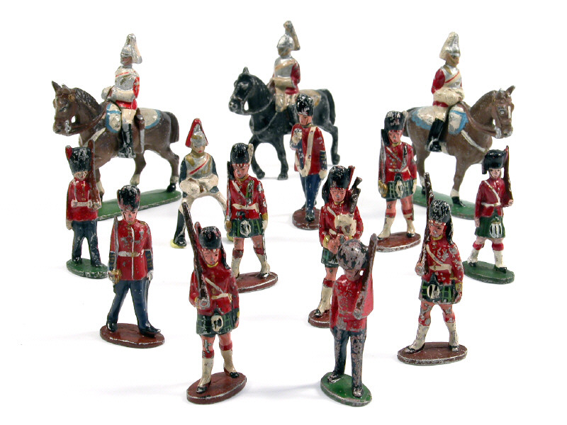 états de 'B' à 'E' - comprend : 2 grenadiers avec le fusil à l'épaule, un officier-grenadier avec un sabre, un porte-étendard (manque étendard), 3 écossais avec le fusil à l'épaule, un écossais avec une cornemuse, 2 officiers écossais avec le sabre à l'épaule & 4 horse-guards dont 3 à cheval