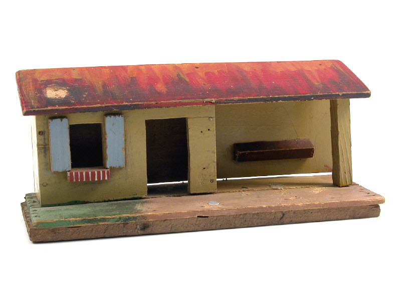 dimensions : 28 x 10 x 11,5 cm - un petit manque sur le socle - une fêlure sur la façade - consolidation du socle avec une partie non d'origine - manque la porte d'entrée & vraisemblablement la cheminée - avec une mangeoire