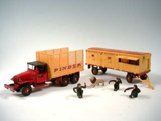 DINKY TOYS (FRANCE) 881 GMC 'PINDER' avec remorque-cage à fauves rouge & jaune