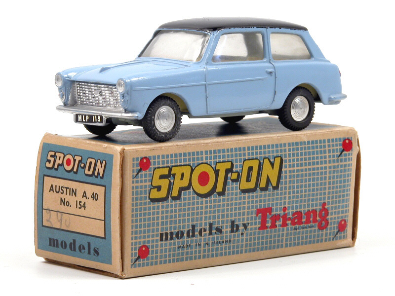 SPOT-ON (GB) 154 AUSTIN A 40 bleu ciel, toit noir, intérieur crème