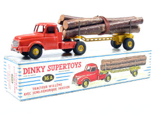 DINKY TOYS (FRANCE) 36A WILLEME Fardier (version avec jantes convexes & remorque ajourée) orange & jaune