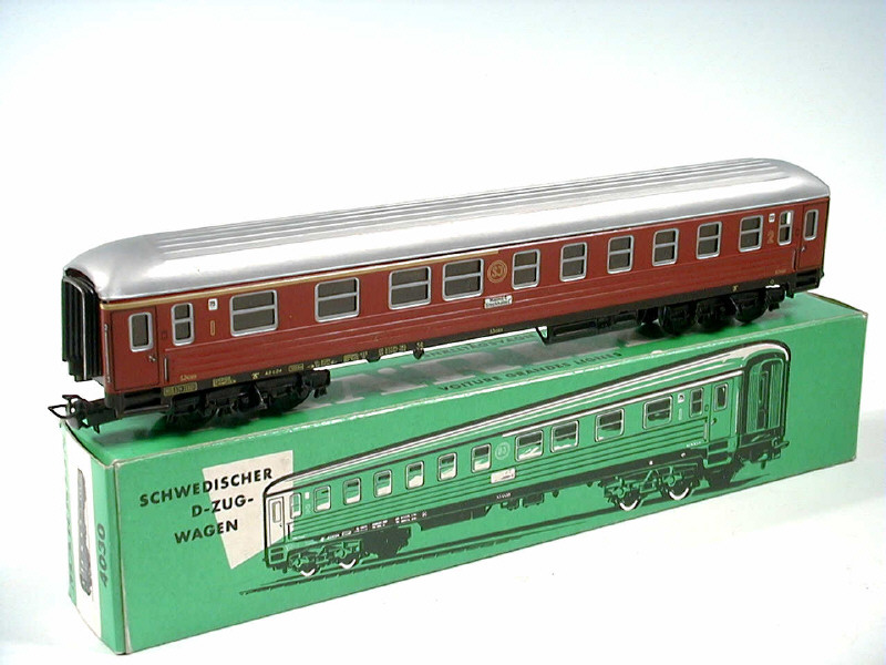 MÄRKLIN 'HO' (ALLEMAGNE) 4030 Voiture-voyageurs première & 2ème classes 'SJ' marron & gris métal