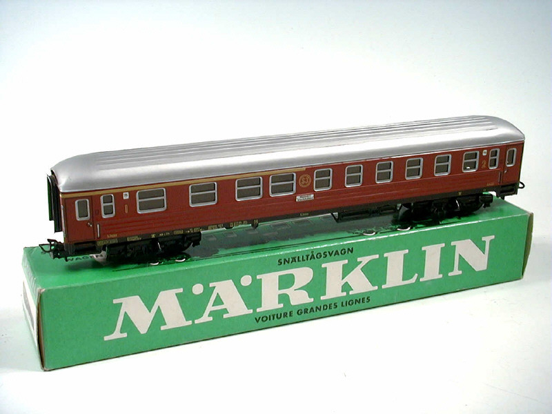 MÄRKLIN 'HO' (ALLEMAGNE) 4030 Voiture-voyageurs première & 2ème classes 'SJ' marron & gris métal