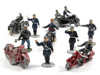 FIGURINES DIVERSES Ensemble de 11 figurines, 3 motos & 2 side-cars