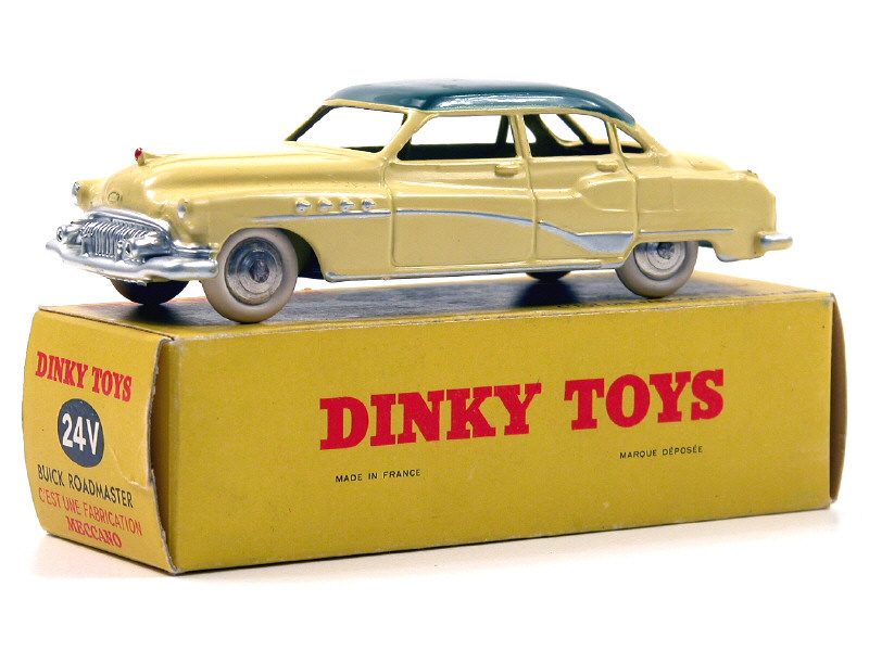 DINKY TOYS (FRANCE) 24V BUICK ROADMASTER (version avec intérieur de toit quadrillé & jantes chromées) jaune paille, toit vert