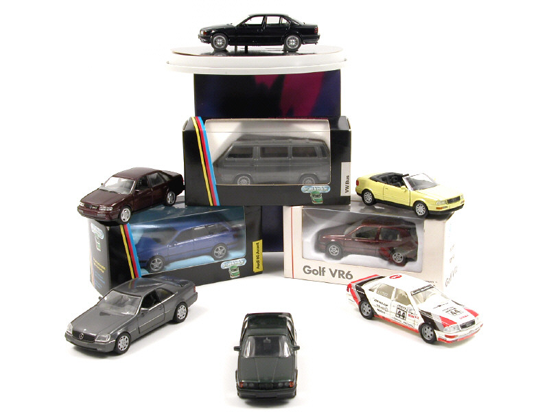miniatures reproduisant les modèles : MERCEDES, AUDI, VOLKSWAGEN & BMW - 4 modèles avec boîte
