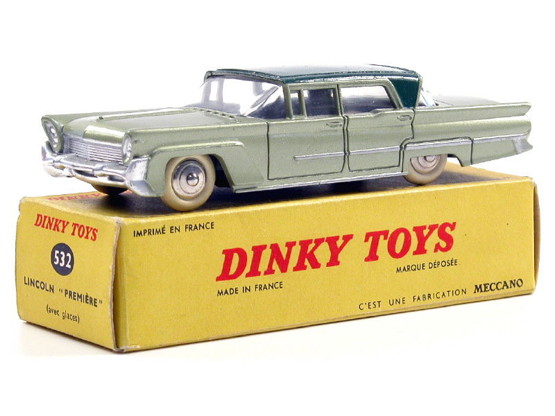 DINKY TOYS (FRANCE) 532 LINCOLN PREMIERE (version avec jantes convexes) vert métal, toit vert foncé