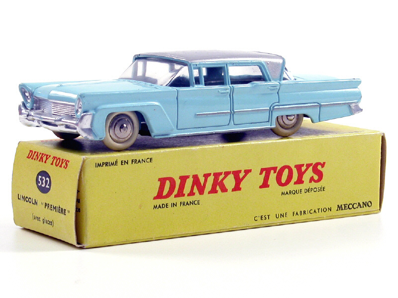 DINKY TOYS (FRANCE) 532 LINCOLN PREMIERE (version avec jantes convexes) bleu ciel, toit gris métal