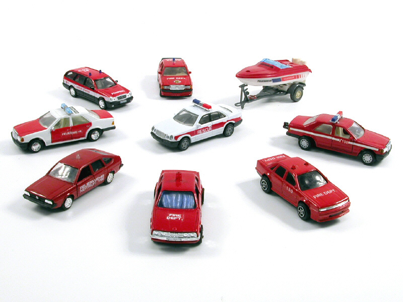 DIVERS Ensemble de 8 voitures & un bateau de pompiers