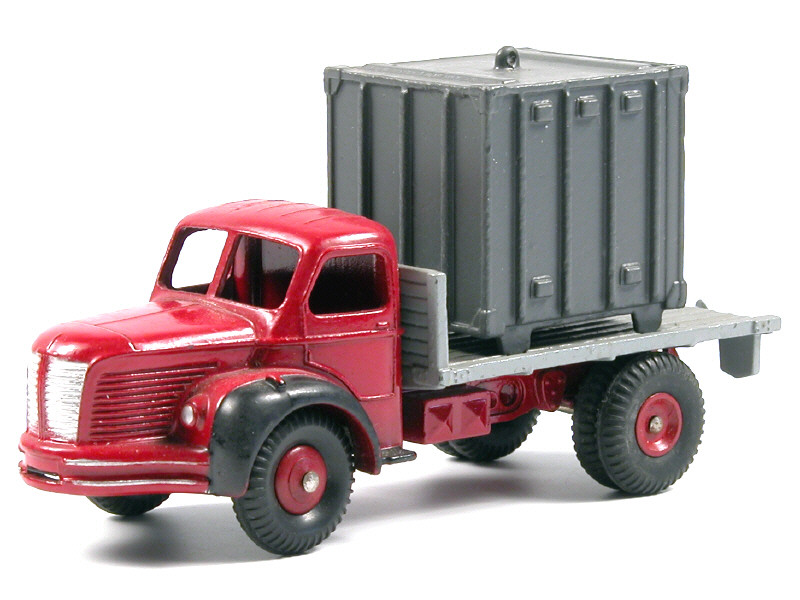 DINKY TOYS (FRANCE) 34B BERLIET Plateau avec container (version avec anneau moulé) rouge, plateau gris clair
