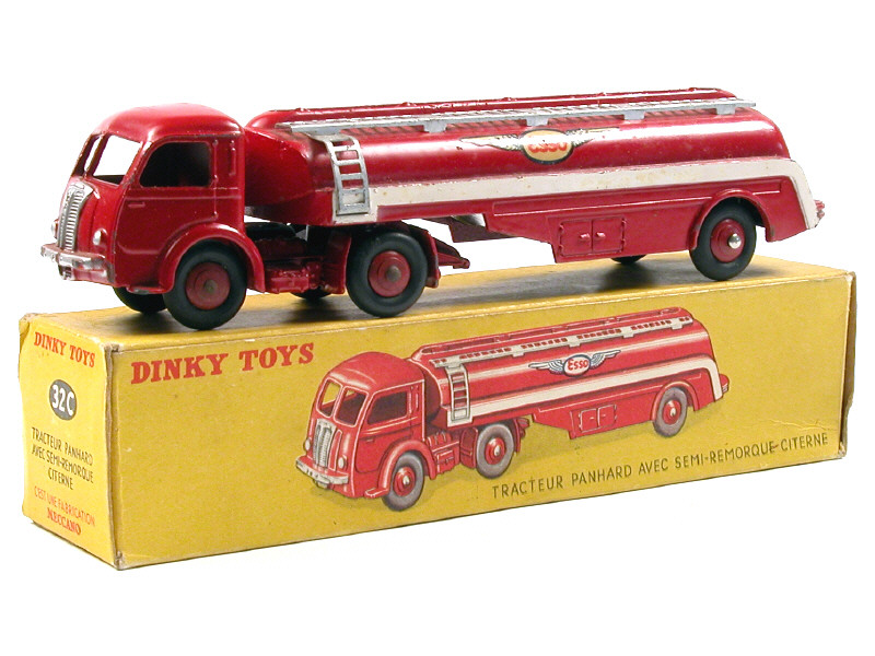 DINKY TOYS (FRANCE) 32C PANHARD Semi-remorque citerne 'ESSO' (version avec jantes convexes) rouge (décalques 'grandes ailes')