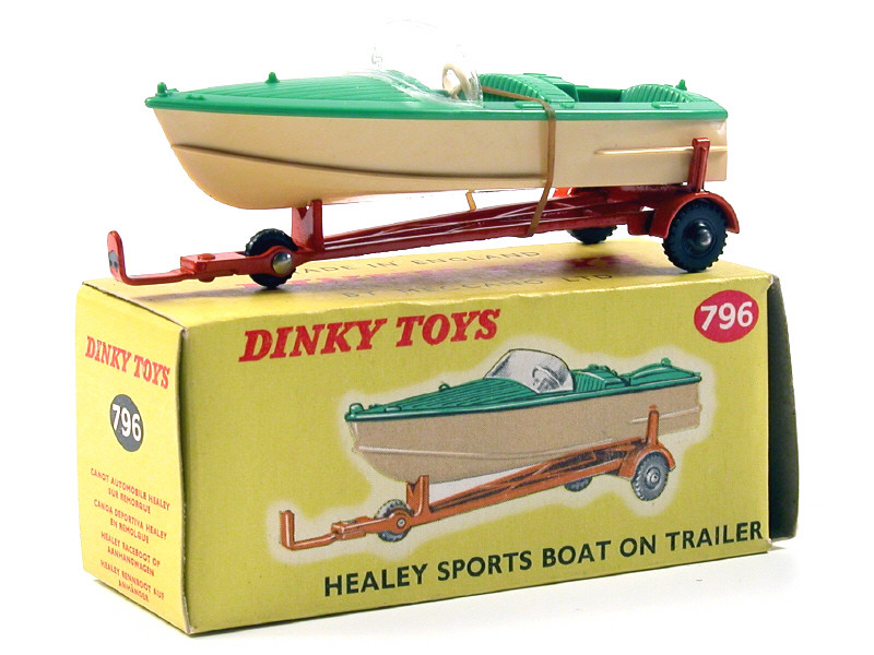DINKY TOYS (GB) 796 HEALEY SPORTS BOAT avec remorque orange, crème & vert