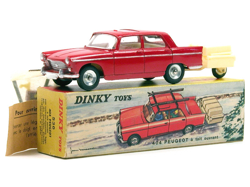 DINKY TOYS (FRANCE) 536 PEUGEOT 404 avec remorque monoroue (skis jaunes) rouge