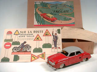 contient une frégate avec moteur à clef (fonctionne), un filin de guidage, une notice & une planche de décor - longueur de la voiture 16 cm