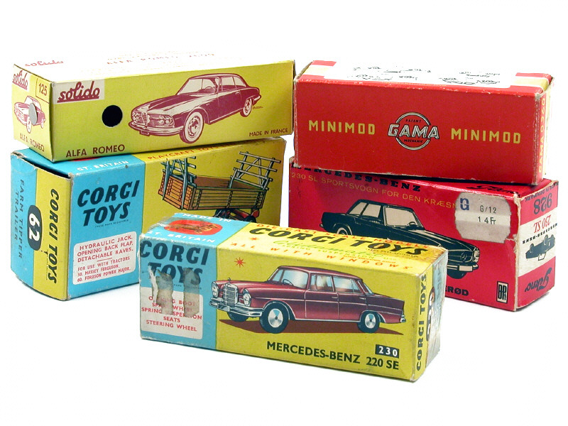 comprend les références : 62 (c) & 230 (d) de la marque CORGI TOYS, 125 (a) de SOLIDO, 9360 (c) de GAMA & 928 (b) de TEKNO