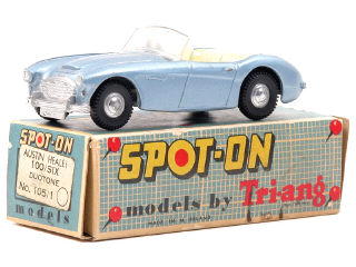 avec fiche TRI-ANG SPOT-ON illustrée d'une photo couleur décrivant l'historique de la voiture & prospectus du SPOT-ON club (petite traces d'humidité) - manque décalque de plaque minéralogique avant