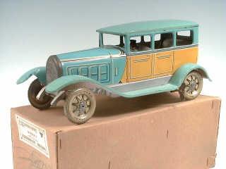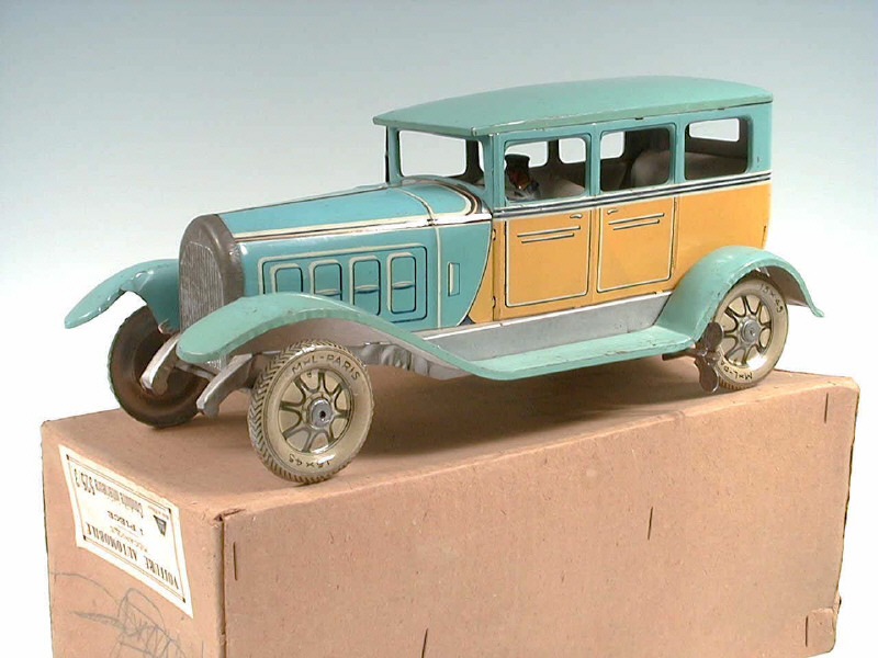 longueur 30 cm - moteur à ressort (poussif) - avec chauffeur - manque couvercle de la boîte - TRES BEL ETAT GENERAL !