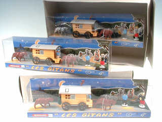 chaque coffret contient : une roulotte, trois chevaux & trois figurines