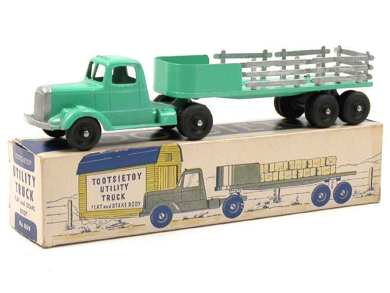 TOOTSIETOY (USA) 869 MACK L-LINE Semi-remorque bétaillère de 1947 vert vif & argent