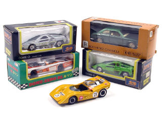 miniatures reproduisant les modèles : DOME, ROLLS ROYCE & NISSAN - on y retrouve les marques : YONEZAWA, K & M & KADO - un véhicule sans boîte avec une charnière de portière cassée