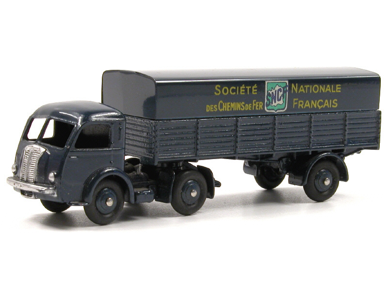 DINKY TOYS (FRANCE) 32AB PANHARD Semi-remorque 'S.N.C.F' (version avec intérieur de toit lisse) bleu foncé (fond de l'écusson uni)